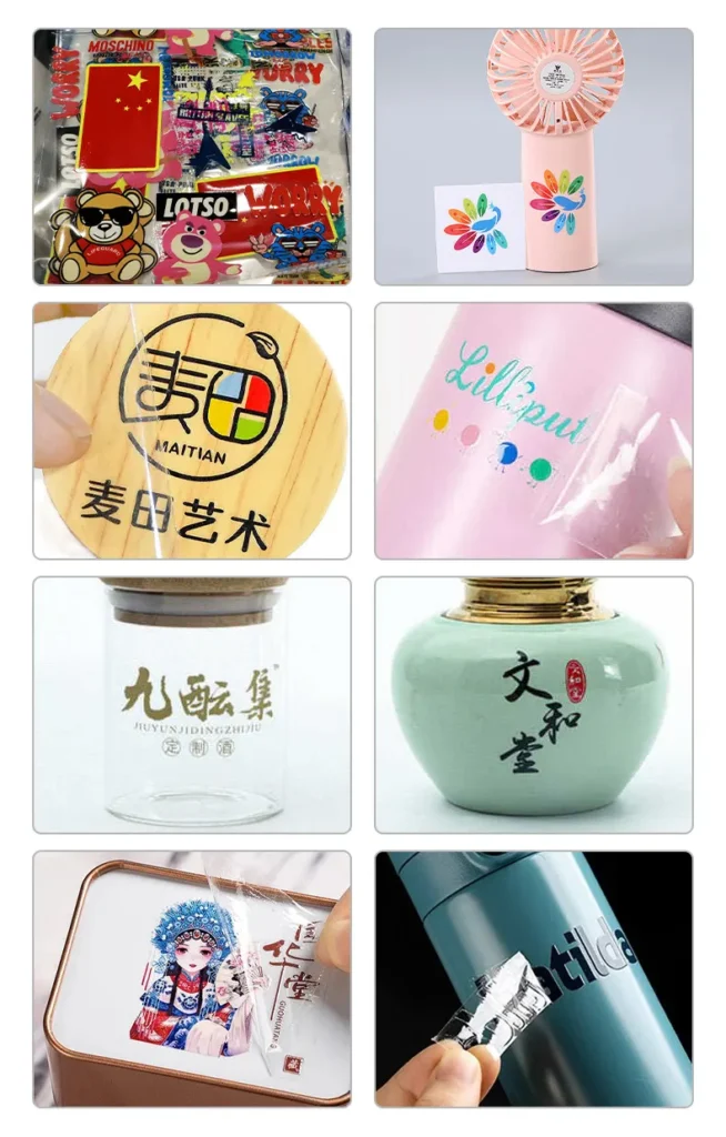 La película UV DTF se utiliza sobre objetos duros como tableros de madera, cristales, PVC, ABS, acrílico y otros objetos duros. Es resistente a las altas temperaturas y al lavado con agua, y no se decolora ni desgasta.